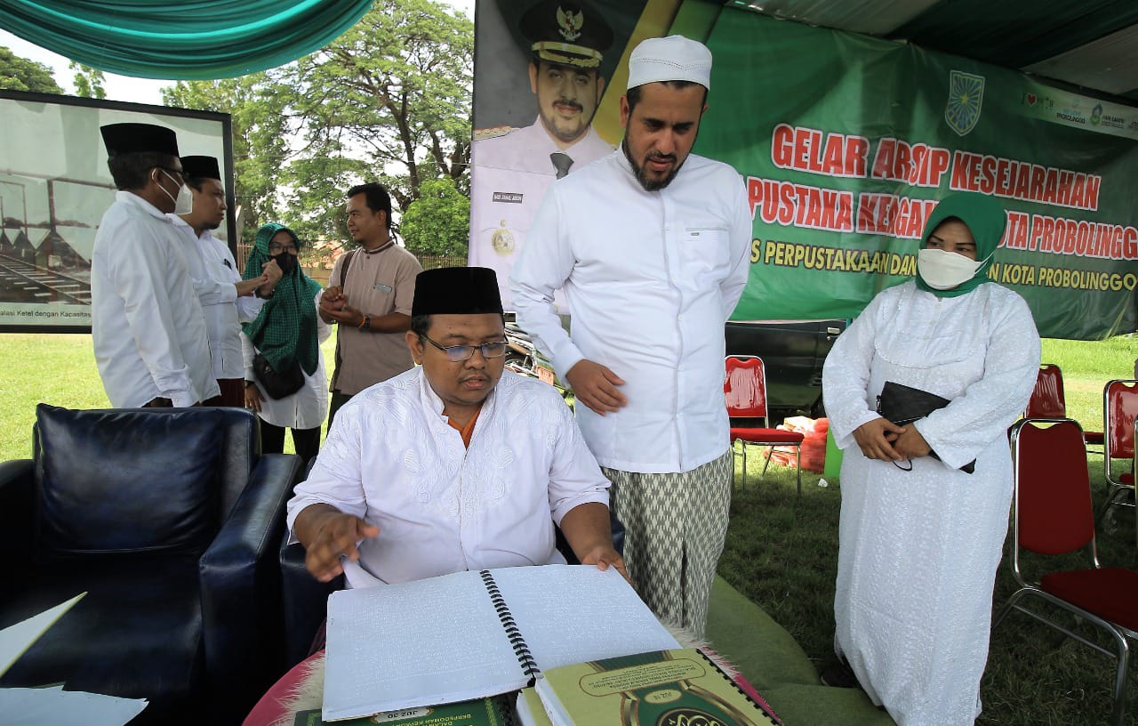 Masih dalam rangkaian Hari Santri tahun 2022 di Stadion Bayuangga, Sabtu (22/10), juga digelar Arsip Kesejarahan dan Perpustakaan Keagamaan. Gelaran koleksi dari Dinas Perpustakaan dan Kearsipan ini memamerkan arsip foto sejarah pendirian pondok pesantren di Kota Probolinggo.