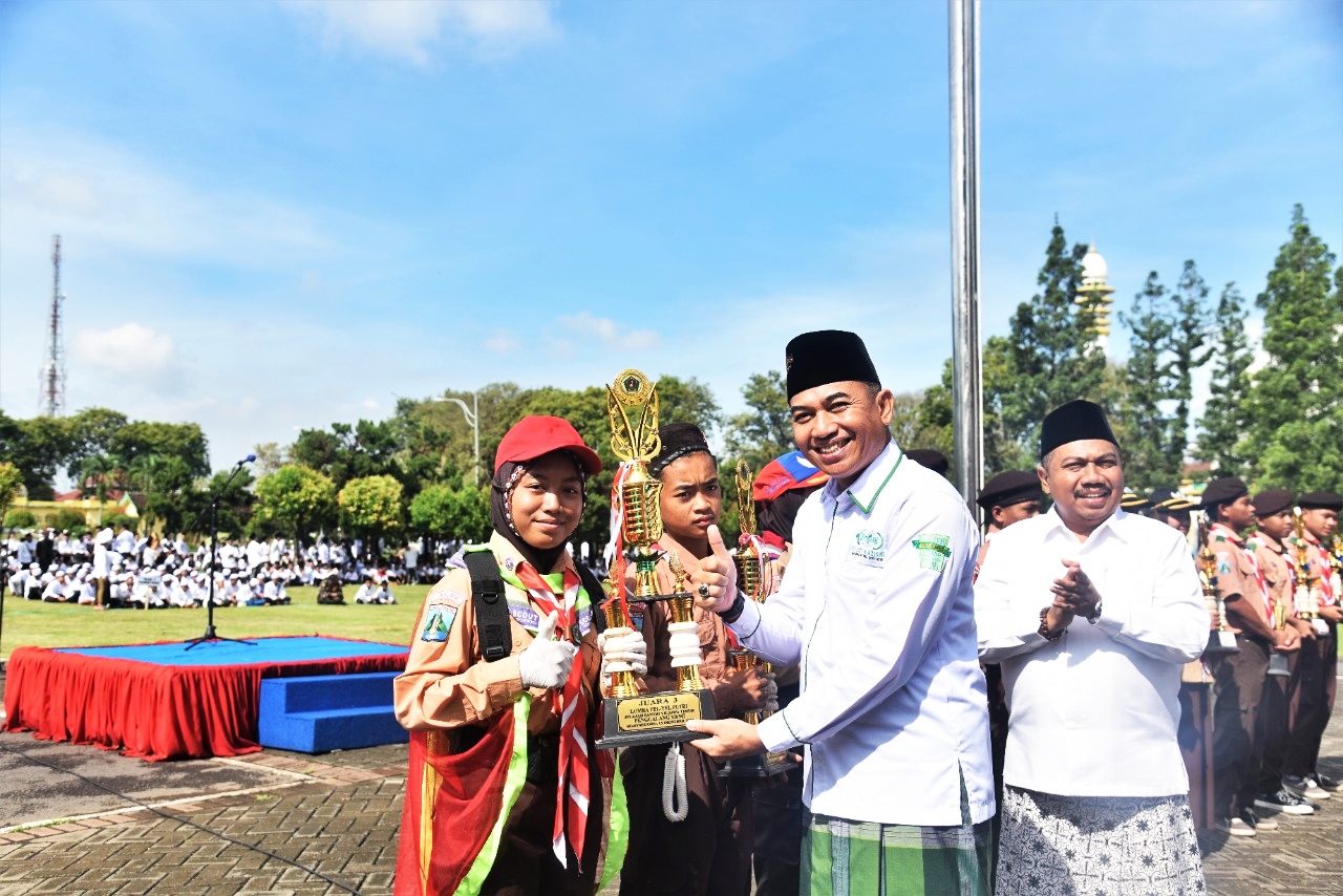 Lumajang, Patrolipos – Kepala Kementerian Agama (Kemenag) Kabupaten Lumajang, Muhammad Muslim memimpin Apel Hari Santri Nasional (HSN) Tahun 2022, di Alun -alun Lumajang, Sabtu (22/10/2022).