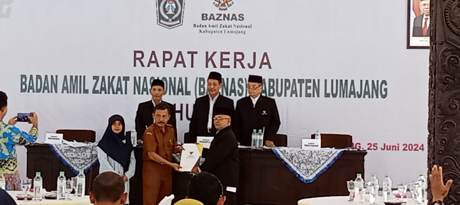 LUMAJANG, PATROLIPOS – Rapat Kerja Badan Amil Zakat Nasional (BAZNAS) Kabupaten Lumajang Tahun 2024, bertempat di Pendopo Arya Wiraraja kabupaten Lumajang,Selasa (25/06/2024).Dalam hal ini menggelar rapat kerja tahunan, untuk merumuskan program kerja tahun 2024.Badan Amil Zakat Nasional (BAZNAS) kabupaten Lumajang menggelar rapat kerja tahunan pada hari ini untuk merumuskan program kerja tahun 2024. Rapat yang berlangsung di Pendopo kabupaten Lumajang dihadiri oleh seluruh pengurus, staf, dan beberapa perwakilan dari tiap kecamatan di berbagai lembaga mitra.