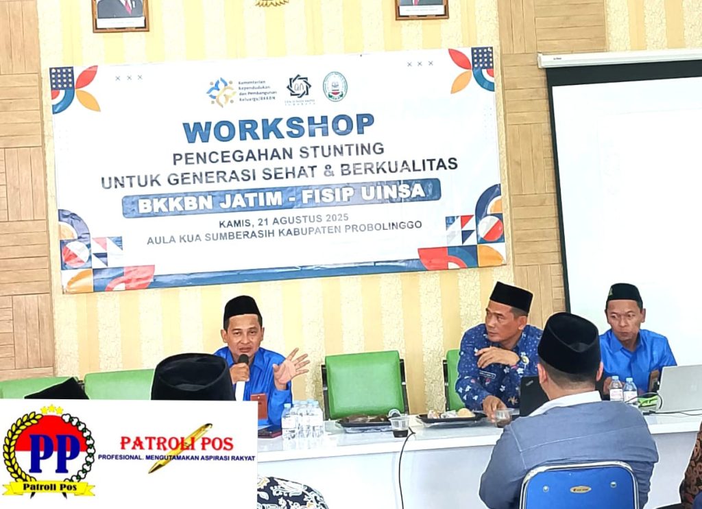 Langkah stalrategis percepaatan penurrnan angka stunting di Kabupaten Probolinggo terus digencarkan. BKKBN Jawa Timur bersama FISIP UIN Sunan Ampel Surabaya (UINSA) dan Asosiasi Penghulu Republik Indonesia (APRI) Kabupaten Probolinggo menggelar Workshop Pencegahan Stunting di Aula KUA Sumberasih, Kamis (21/8/2025).