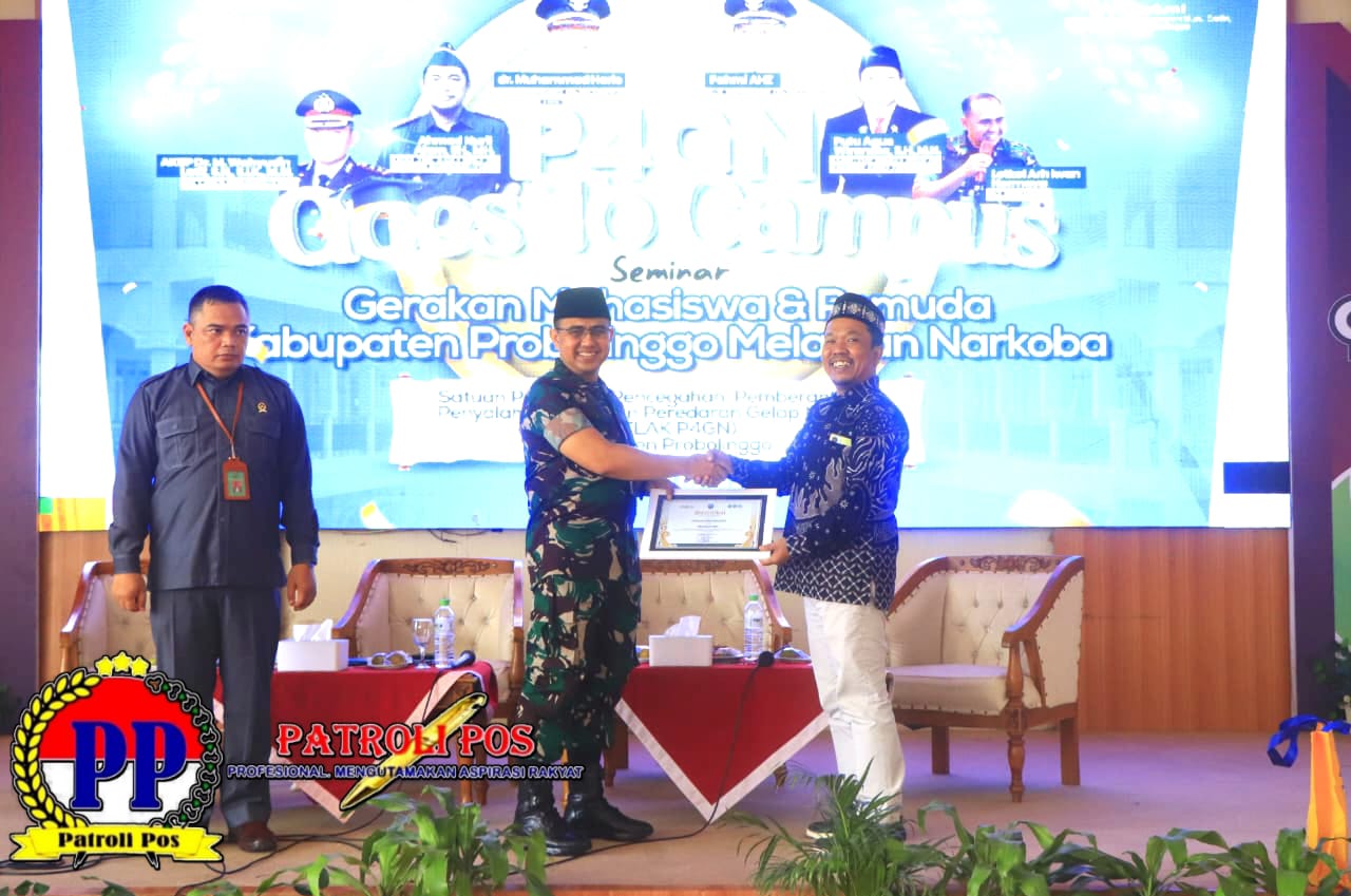 Kegiatan bertajuk “P4GN Goes To Campus: Gerakan Organisasi Mahasiswa dan Pemuda Kabupaten Probolinggo Melawan Narkoba” ini diikuti sekitar 1000 mahasiswa dan pemuda. Hadir sebagai narasumber Dandim 0820/Probolinggo, Letkol Arh Iwan Hermaya, P., S.I.P., M.I.P., bersama Forkopimda Kabupaten Probolinggo.