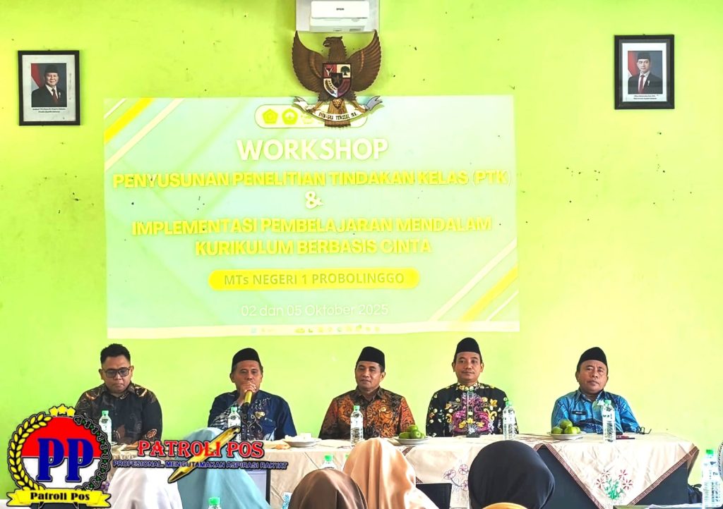 MTs Negeri 1 Probolinggo menjadi pusat kegiatan akademik penting yang berfokus pada Penyusunan Penelitian Tindakan Kelas (PTK) dan Implementasi Pembelajaran Mendalam Kurikulum Berbasis Cinta. Kegiatan ini dilaksanakan Pada Tanggal 02 sampai dengan 05 Oktober 2025, dengan melibatkan berbagai unsur penting mulai dari pimpinan madrasah, tenaga pendidik, hingga pengawas madrasah, sebagai bagian dari upaya meningkatkan mutu pembelajaran sekaligus mengokohkan identitas madrasah sebagai lembaga pendidikan yang berkarakter Islami, inovatif, dan humanis.