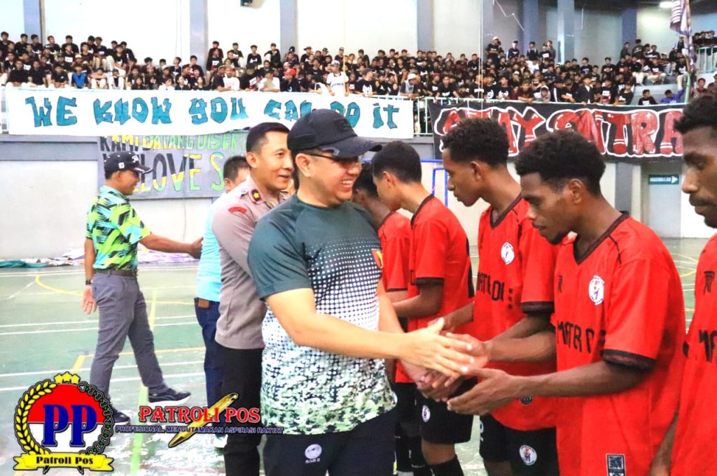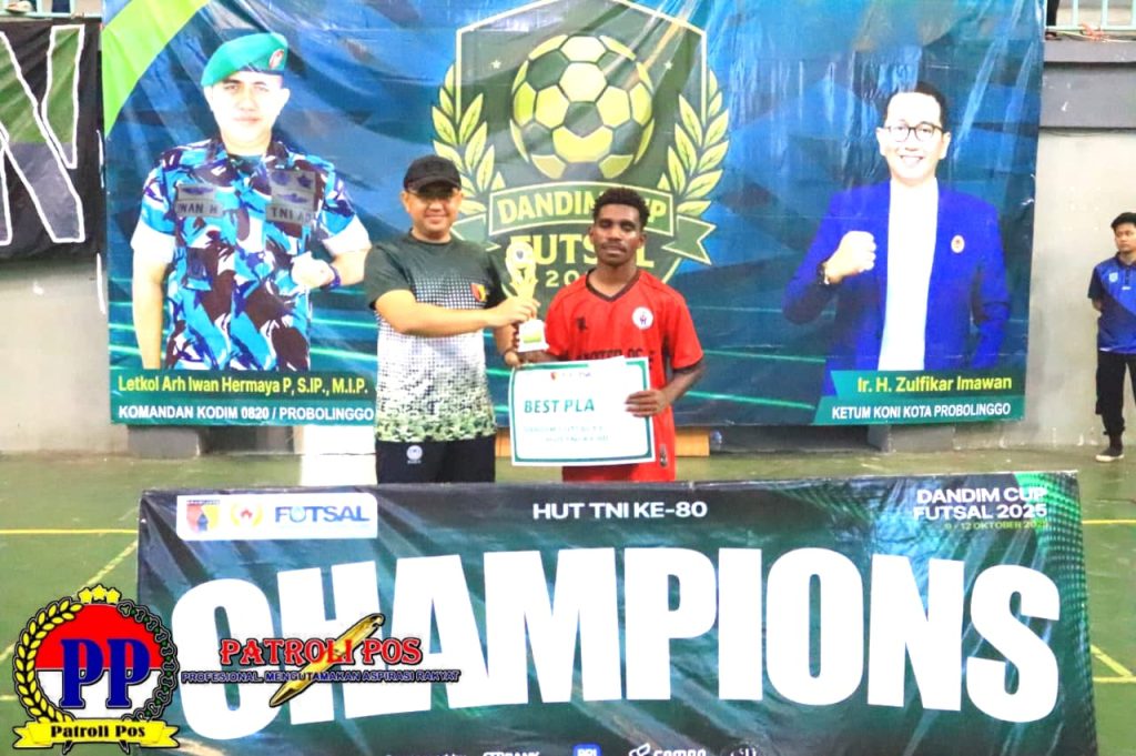 Komandan Kodim (Dandim) 0820/Probolinggo, Letkol Arh Iwan Hermaya bersama sejumlah pihak menghadiri penutupan kejuaraan futsal Dandim Cup tahun 2025 di GOR Mastrip, Kota Probolinggo, Senin (13/10).