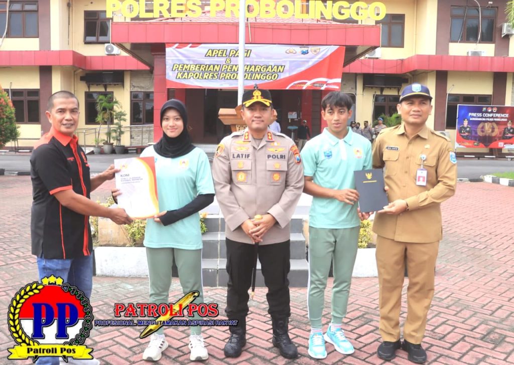 Polres Probolinggo menggelar Apel Pagi sekaligus pemberian penghargaan kepada anggota Polri dan masyarakat yang berprestasi di Lapangan apel Mapolres Probolinggo, Senin (3/11/2025).