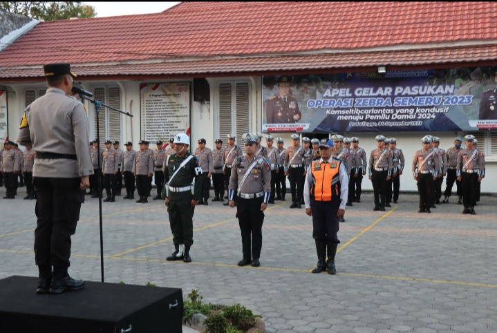 Polres Probolinggo Kota akan memulai Operasi Zebra Semeru 2023 selama dua pekan mulai tanggal 4 sampai dengan 17 September 2023 dengan ditandai Gelar Pasukan Operasi Zebra Semeru 2023 di halaman Mapolres Probolinggo Kota, Senin (4/9/23). Ada delapan sasaran dalam Operasi Zebra Semeru 2023 yang dilaksanakan Polres Probolinggo Kota tersebut.