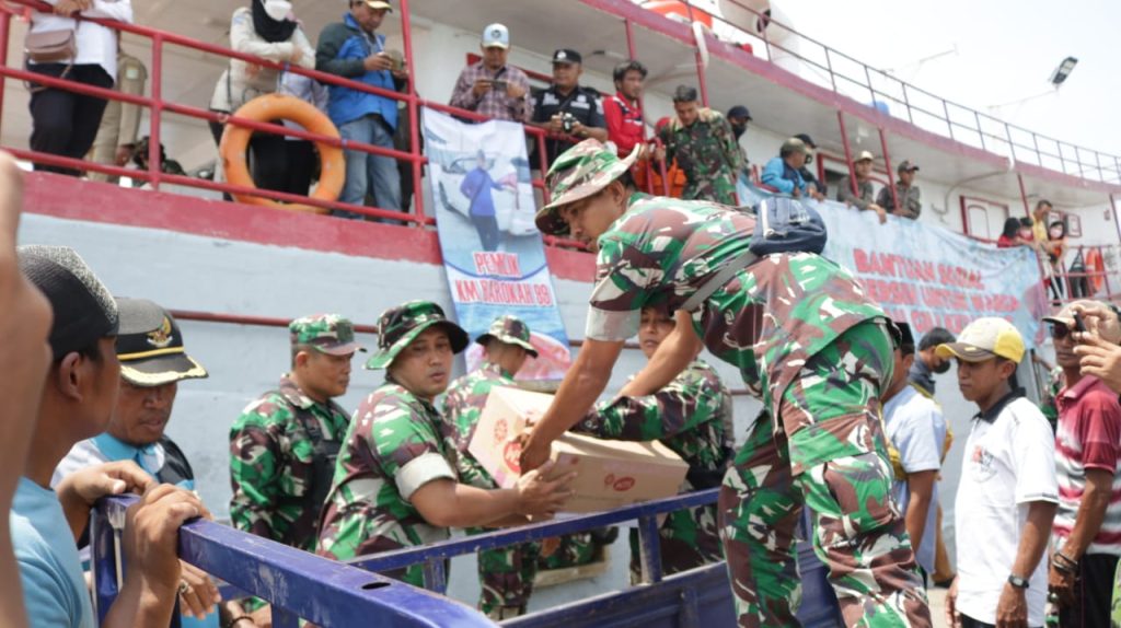 Dandim 0820/Probolinggo Letkol Arh Arip Budi Cahyono turun langsung untuk menyerahkan bantuan air minum dan susu berbagai kemasan kepada masyarakat Desa Gili Ketapang Kecamatan Sumberasih Kabupaten Probolinggo.