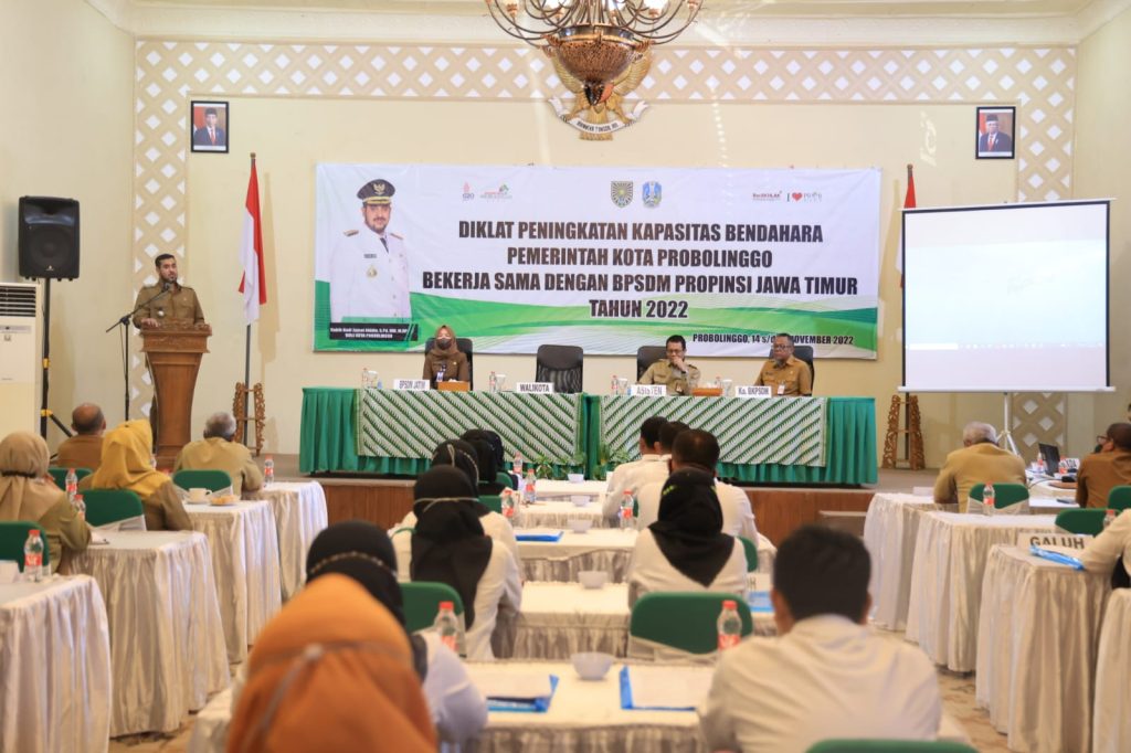 Sebanyak Sebanyak 25 orang bendahara pada perangkat daerah mengikuti Diklat Peningkatan Kapasitas Bendahara Pemerintah Kota Probolinggo, Senin (14/11) di Bale Hinggil. Giat ini merupakan kerja sama antara Badan Kepegawaian dan Pengembangan Sumber Daya Manusia (BKPSDM) Kota Probolinggo dengan Badan Pengembangan Sumber Daya Manusia (BPSDM) Provinsi Jawa Timur. 25 orang bendahara pada perangkat daerah mengikuti Diklat Peningkatan Kapasitas Bendahara Pemerintah Kota Probolinggo, Senin (14/11) di Bale Hinggil. Giat ini merupakan kerja sama antara Badan Kepegawaian dan Pengembangan Sumber Daya Manusia (BKPSDM) Kota Probolinggo dengan Badan Pengembangan Sumber Daya Manusia (BPSDM) Provinsi Jawa Timur.