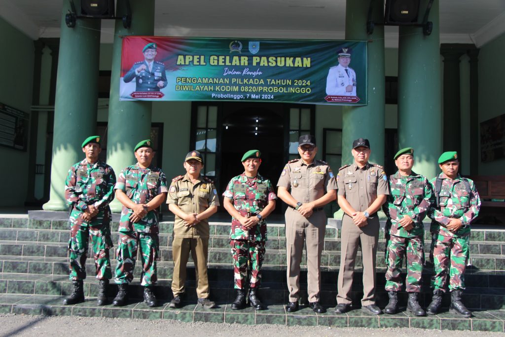 Dandim 0820/Probolinggo, Letkol Arm Heri Budiasto, memimpin langsung kegiatan apel gelar pasukan dalam persiapan pengamanan Pemilihan Kepala Daerah (Pilkada) tahun 2024 di wilayah Kodim 0820/Probolinggo pada Selasa (7/5).