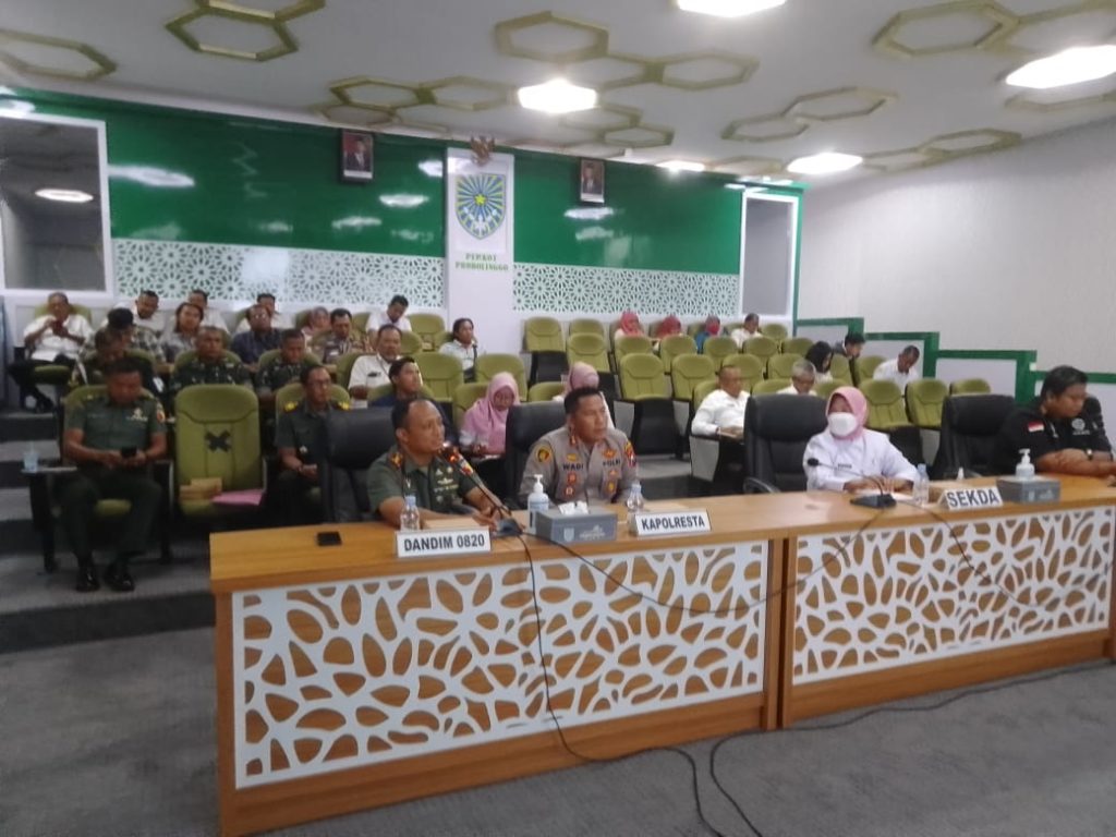 Komandan Kodim (Dandim)0820/Probolinggo Letkol Arm Heri Budiasto menghadiri pelaksanaan rapat kordinasi tim terpadu penanganan konflik sosial Kota Probolinggo bulan September 2023.
