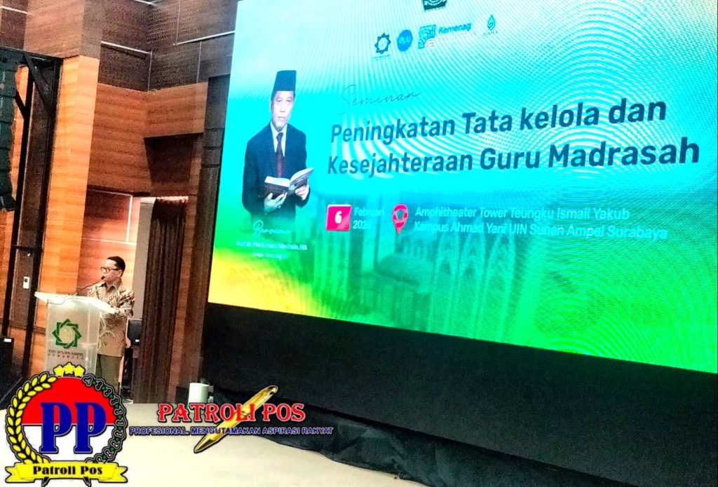 Kepala Kantor Kementerian Agama (Kemenag) Kabupaten Probolinggo, Dr. Samsur, menghadiri Seminar Nasional bertajuk “Peningkatan Tata Kelola dan Kesejahteraan Guru Madrasah” yang diselenggarakan di Amphitheater Tower Teungku Ismail Yakub, Kampus Ahmad Yani UIN Sunan Ampel (UINSA) Surabaya, Jumat (6/2/2026).