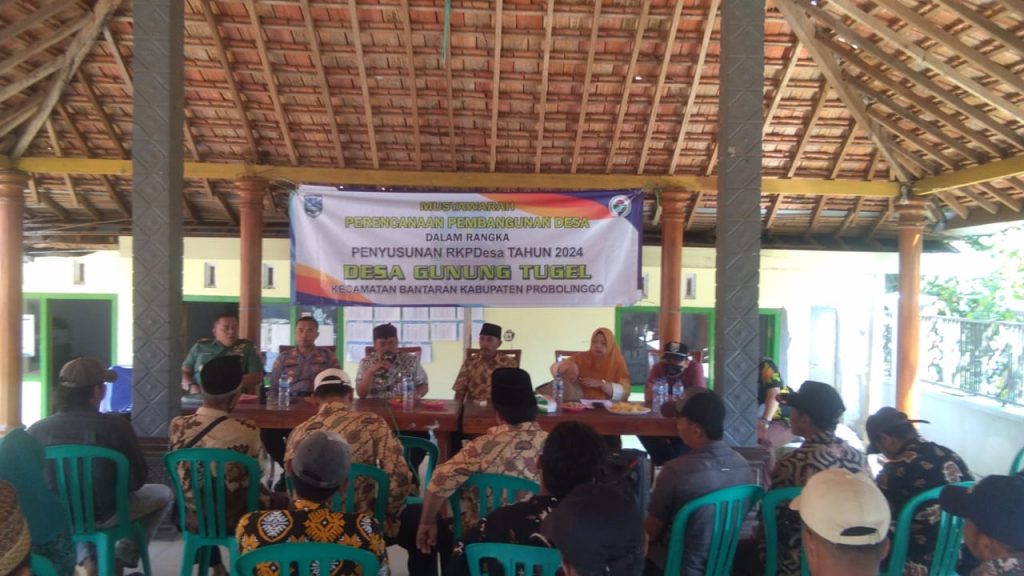 Danramil 0820/ 04 Bantaran Kapten Czi Bagus Handoko menghadiri rapat Musyawarah Rencana Pembangunan Desa (Musrenbangdes) Desa TA 2024 bertempat di kantor Desa Gunung Tugel Kecamatan Bantaran Kabupaten Probolinggo.Jumat (25/8).