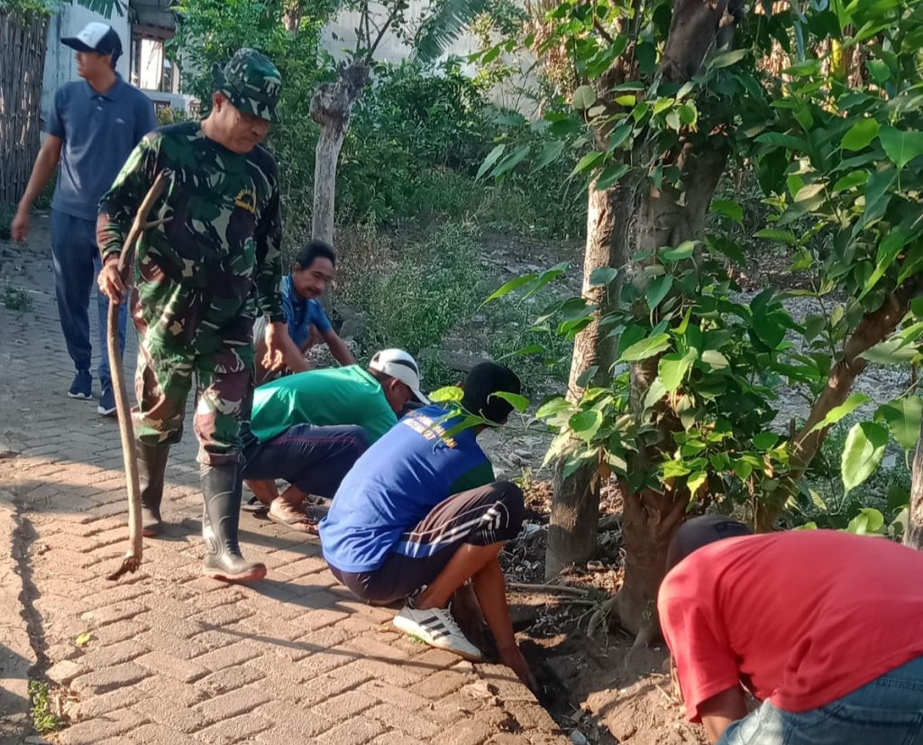 “Kami bersama warga melaksanakan kerja bakti pembersihan selokan untuk mengantisipasi terjadi banjir saat turun hujan dan kesempatan ini juga kami pergunakan untuk menghimbau warga agar selalu menjaga kebersihan lingkungannya dengan cara membuang sampah pada tempatnya, karena hujan sangat rentan dengan perkembangan nyamuk demam berdarah” jelas Babinsa