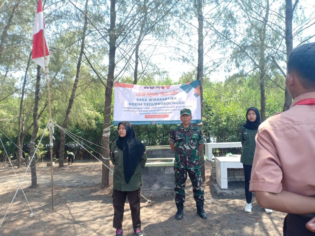 Dalam rangka memperingati hari ulang tahun (HUT) Republik Indonesia ke 78 tahun 2023 serta masih dalam momen hari Pramuka, saka wirakartika kodim 0820/Probolinggo melaksanakan kegiatan penanaman bibit pohon mangrove di Pantai Bahak Desa Tongas Kecamatan Tongas Kabupaten Probolinggo.