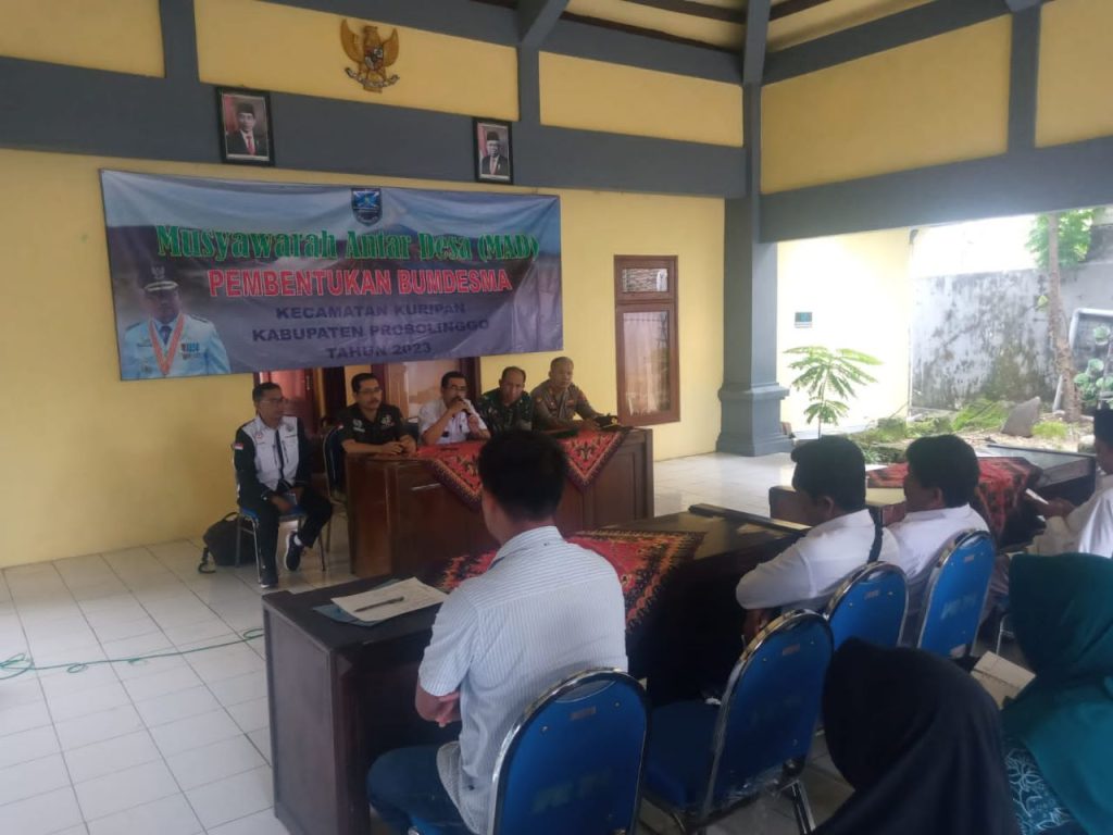 Musyawarah antar desa kali ini membahas dalam rangka proses pembahasan tentang Pembentukan Badan Usaha Milik Desa Bersama (BUMDESMA) yang di hadiri oleh Forkopimka Kuripan, seluruh kepala desa sekecamatan Kuripan dan berbagai komponen masyarakat bertempat di Pendopo Kecamatan Kuripan Kabupaten Probolinggo.Sabtu (28/1/23)