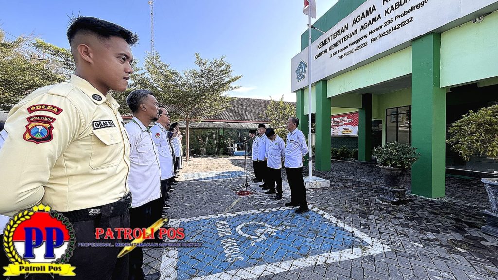 Suasana khidmat dan penuh semangat mengiringi pelaksanaan apel perdana pasca Hari Raya Idulfitri di lingkungan Kantor Kementerian Agama Kabupaten Probolinggo. Apel tersebut dipimpin langsung oleh Kepala Sub Bagian Tata Usaha (Kasubbag TU), Mohammad Sa’dun, dengan didampingi oleh Kepala Seksi Pendidikan Diniyah dan Pondok Pesantren (PD Pontren), Penyelenggara Zakat dan Wakaf (Penzawa), serta Penyelenggara Hindu. Senin 30/03/2026.