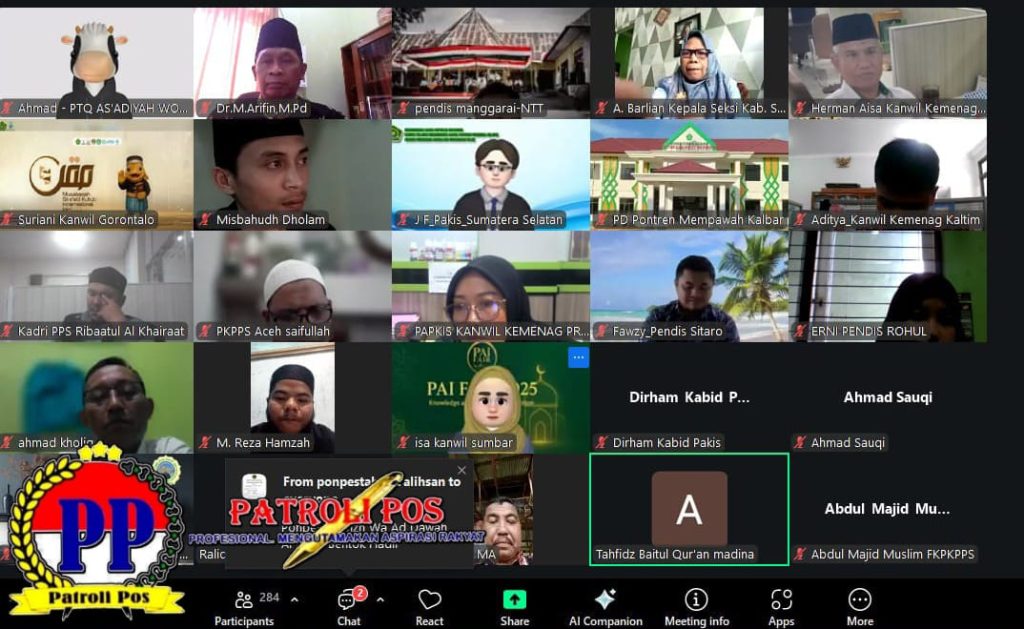 Kegiatan ini diikuti para Kabid PD Pontren/Papkis/Pendis Kanwil Kemenag Provinsi, Kasi PD Pontren Kemenag Kabupaten/Kota, Tim EMIS Ditjen Pendis, serta Pimpinan DPP Forum Komunikasi PKPPS. Melalui Zoom Meeting, pada Kamis 20/11/2025.