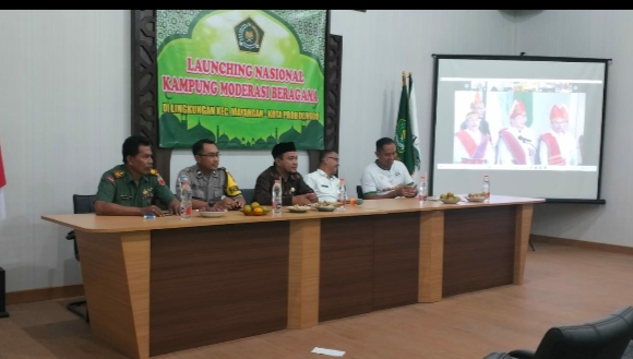 Peltu Muhammad Ismail, anggota Koramil 0820/01 Kanigaran menghadiri kegiatan launching kampung moderasi beragama (KMB) yang digelar di kantor KUA Kecamatan Mayangan Kota Probolinggo, Selasa (1/8).