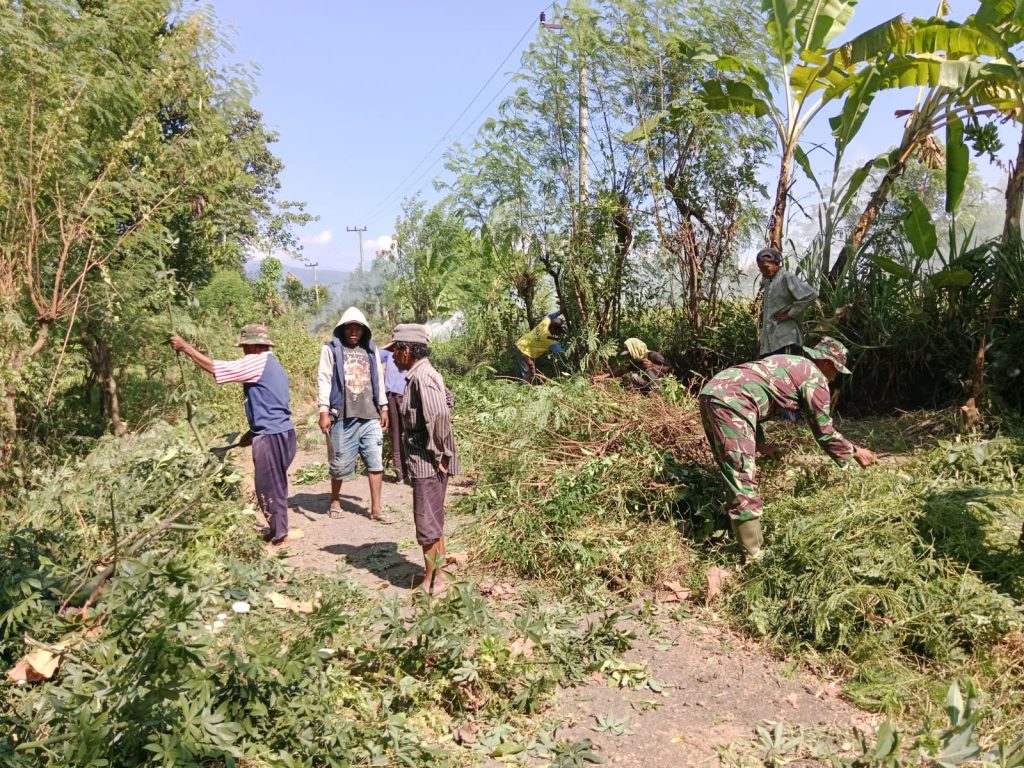 Ia menambahkan, dengan adanya kerja bakti ini, diharapkan kondisi jalan desa menjadi lebih rapi, indah, dan nyaman dilihat. “Kehadiran kami dari unsur TNI dalam kerja bakti ini untuk membantu masyarakat sebagai wujud bahwa TNI selalu ada untuk rakyat,” ujarnya dengan penuh semangat.