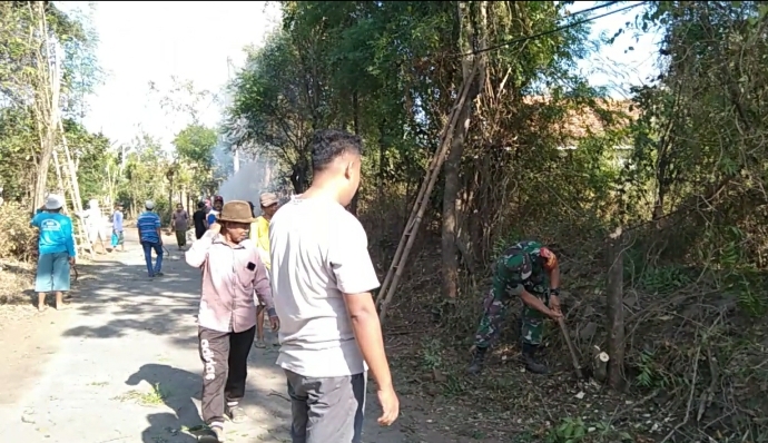 Koramil 0820/04 Bantaran kembali hadir di tengah-tengah masyarakat dalam rangka mempelopori pelaksanaan kerja bakti di salah satu desa di wilayah teritorialnya, Minggu (03/09/2023).