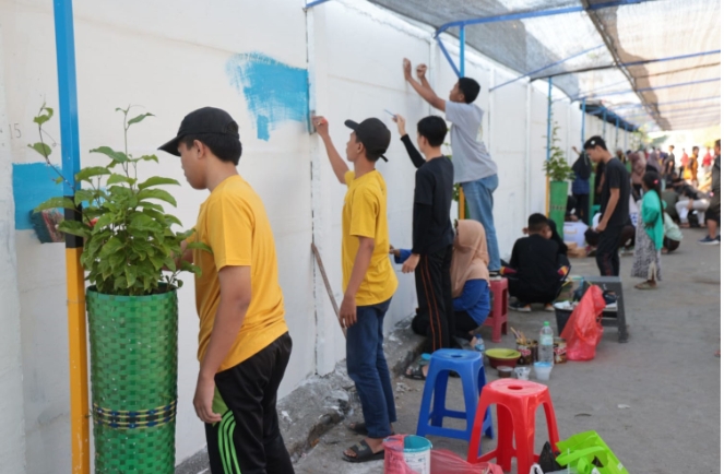Dalam kegiatan yang berlangsung di landasan Wisata Kum-kum Mayangan itu, TP PKK bekerjasama dengan komunitas Surya Cinta Bahari (SCB) yang selama ini mengelola dan mempercantik salah satu landasan pantai untuk terapi kum-kum. Di lahan yang biasanya digunakan untuk parkir, terdapat dinding panjang yang pada Sabu (27/8) pagi itu digunakan sebagai kanvas oleh peserta.