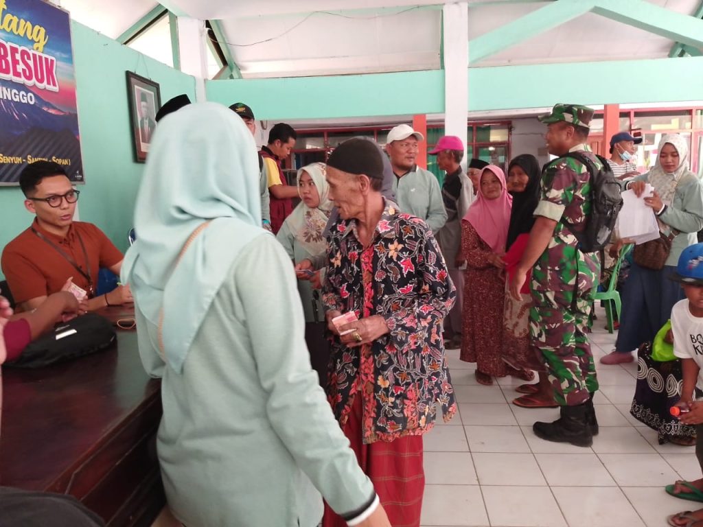 Babinsa Koramil 0820/14 Besuk Serda Ahmad Fauzi melaksanakan pendampingan Penyaluran Bantuan PKH(Program Keluarga Harapan) Tahun 2023 kepada ratusan orang Lansia yang tidak mampu sewilayah Kecamatan Besuk, Kabupaten Probolinggo. Kamis (4/11/23).
