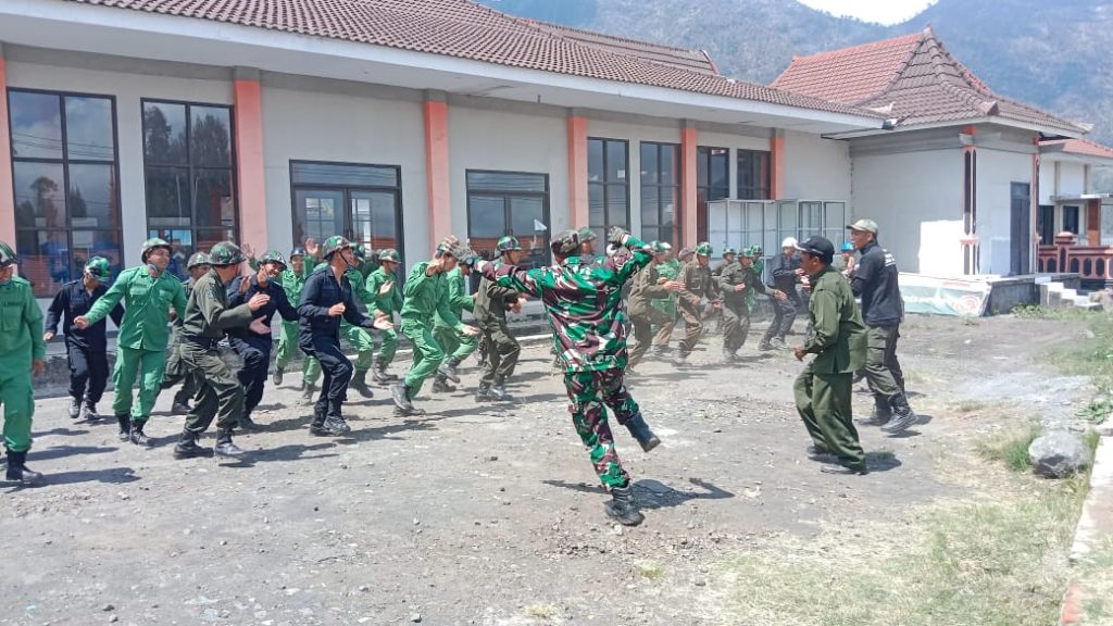 Guna meningkatkan Sumber Daya Manusia (SDM) Satuan Linmas (Perlindungan Masyarakat) serta meningkatkan peran Satuan Linmas yang telah diprogramkan, Pelda N Dodik H Bati Komsos Koramil 0820/ 08 Sukapura bersama Aiptu Ichwan Purbo Kanit Binmas Polsek Sukapura, laksanakan kegiatan pelatihan dan memberikan pembekalan mental karakter Linmas desa Ngadisari, Rabu (21/11).