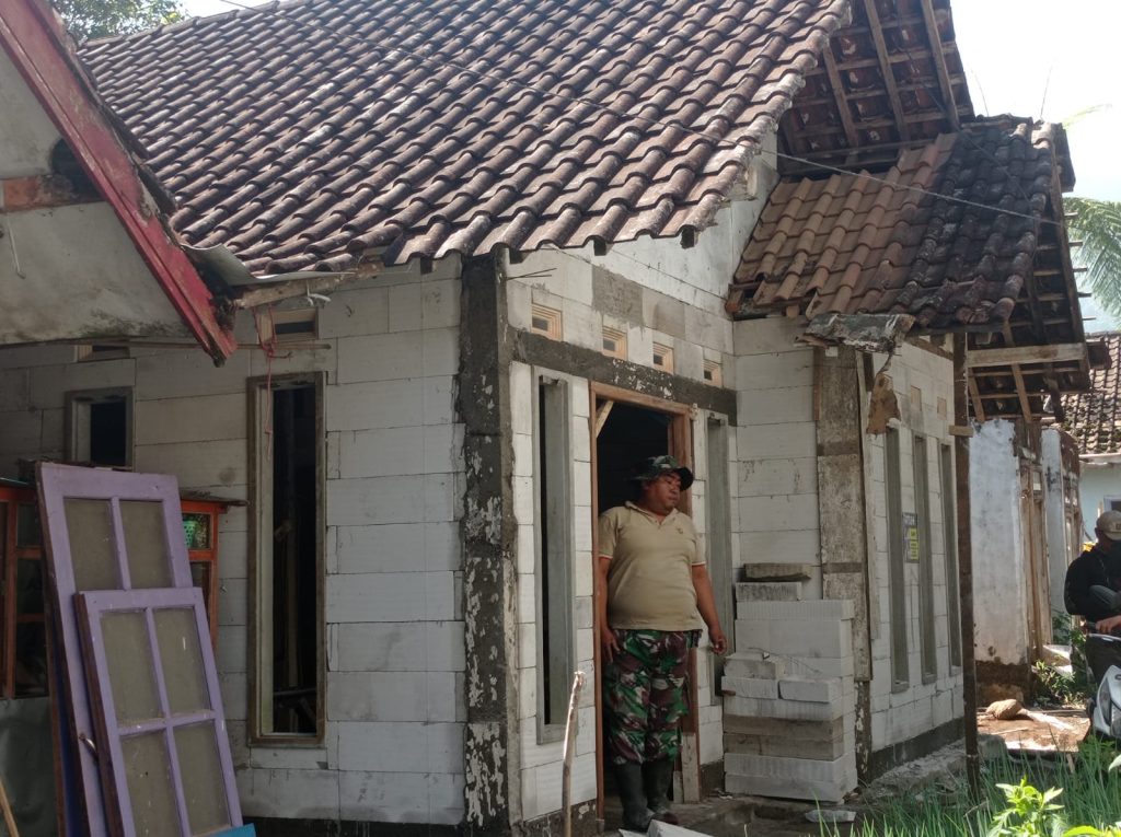 Pengerjaan renovasi rumah tidak layak huni menjadi rumah tinggal huni milik Samik (55) warga Dusun Cocok, Desa Kalianan, Kecamatan Krucil sebagai penerima manfaat dalam program TNI Manunggal Membangun Desa (TMMD) ke 121 Kodim/Probolinggo sudah mencapai 40 persen.