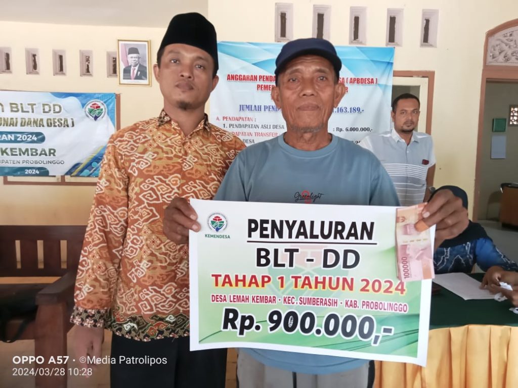 Di tengah bulan suci Ramadhan, Kepala Desa Lemahkembar. Hariyanto, telah memastikan penyaluran Bantuan Langsung Tunai (BLT) tahap 1 Yang disalurkan kepada 25 KPM. Per KPM mendapatkan 900 ribu. Periode Bulan Januari, Febuari Dan Maret Tahun 2024. Kegiatan tersebut bertempat di Desa Lemahkembar Kecamatan Sumberasih Kabupaten Probolinggo Kamis (28/03/24)