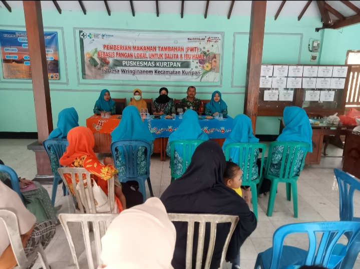 Koramil 0820/10 Kuripan ikut ambil bagian dalam rapat kordinasi pemberian makanan tambahan (PMT) berbasis pangan lokal untuk balita dan ibu hamil di Kantor Desa Wringinanom Kecamatan Kuripan Kabupaten Probolinggo.