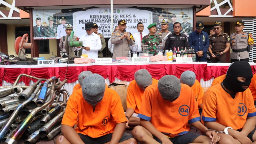 Dalam rangka mengoptimalkan Operasi Ketupat Semeru 2024, Polres Probolinggo Kota melakukan pemusnahan barang bukti hasil operasi keselamatan dan operasi pekat Semeru 2024 di halaman depan Mapolres Probolinggo Kota pada Rabu (03/4/24). Acara pemusnahan tersebut dihadiri oleh jajaran Forum Koordinasi Pimpinan Daerah (Forkopimda) Kota Probolinggo.