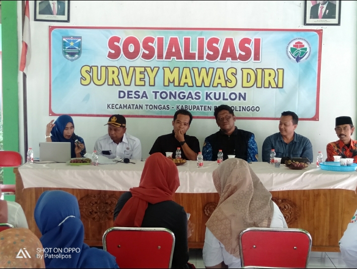 Kegiatan survey mawas diri tersebut dihadiri oleh kepala desa Tongas Kulon. Sholihin, bertempat di Kantor Desa Tongas, dengan tujuan agar terjalin kerjasama antara masyarakat, puskesmas dan saling bersinergi dalam memberikan informasi tentang kesehatan lingkungan masyarakat, dan bila ada permasalahan agar dapat dengan cepat di tindaklanjuti oleh Puskesmas Tongas khususnya dan Pemerintah Desa Tongas kulon umumnya.