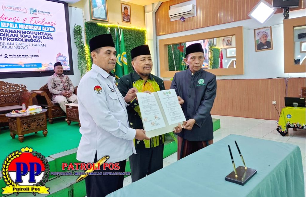 Langkah strategis penguatan mutu pendidikan madrasah di Kabupaten Probolinggo semakin dipertegas melalui Rapat Koordinasi dan Evaluasi (Rakorev) Kelompok Kerja Kepala Madrasah Aliyah (KKM MA) yang dirangkai dengan penandatanganan Nota Kesepahaman (MoU) lintas lembaga, Selasa (28/4/2026), di Aula KH. Moh. Hasan, Universitas Islam Zainul Hasan (UNZAH) Genggong.
