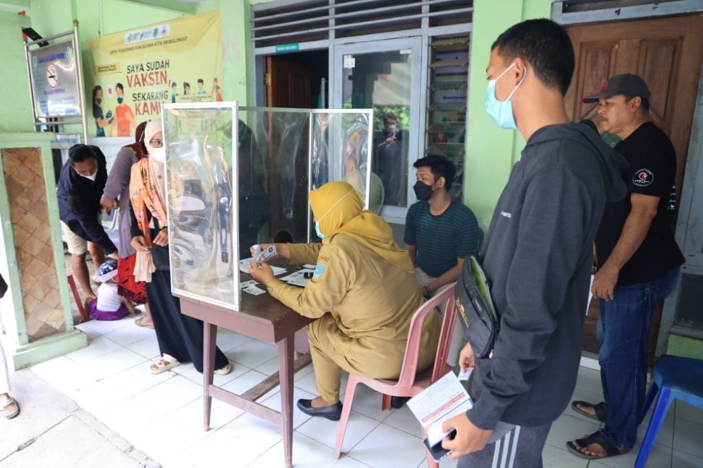 Fasilitas Kesehatan di Kota Probolinggo siap melayani vaksinasi Covid 19 dosis booster kedua. Seperti yang terlihat UPTD Puskesmas Kanigaran, Selasa (24/1), respon masyarakat begitu antusias. Vaksin booster kedua ini diperuntukkan bagi masyarakat umum berusia 18 tahun ke atas.