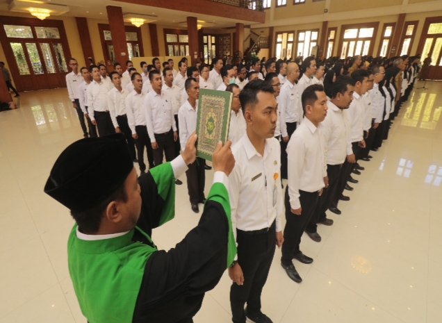 Sebanyak 187 orang terdiri dari 182 Pegawai Pemerintah dengan Perjanjian Kerja (PPPK) dan 5 orang Aparatur Sipil Negara (ASN) mengikuti pelantikan dan pengambilan sumpah atau janji jabatan. Dipimpin Sekda drg. Ninik Ira Wibawati, ratusan ASN di lingkungan Pemerintah Kota Probolinggo itu mengikuti secara luring, di Ballroom Paseban Sena, Senin (31/7).