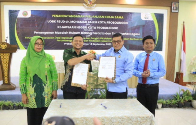 UOBK RSUD dr. Mohamad Saleh melakukan Penandatanganan Perjanjian Kerja Sama bersama Kejaksaan Negeri Kota Probolinggo, Kamis (14/9) di Ombas Café dan Resto. Penandatanganan ini dilakukan oleh Direktur UOBK RSUD dr. Mohamad Saleh, dr. Intan Sudarmadi dengan Kajari Probolinggo Abdul Mubin.