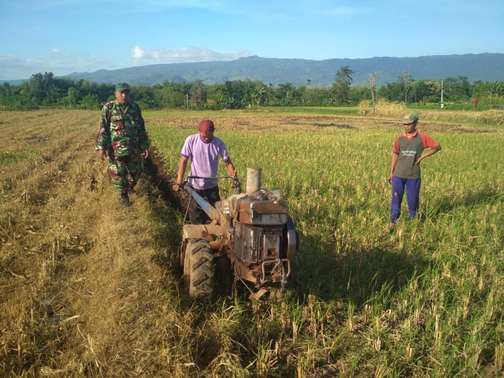 Bertempat Desa Tunggak Cerme, Kecamatan Wonomerto, Kabupaten Probolinggo. Koramil 0820/07 Wonomerto melakukan pendampingan dalam pelaksanaan pembajakan lahan pertanian milik warga setempat.