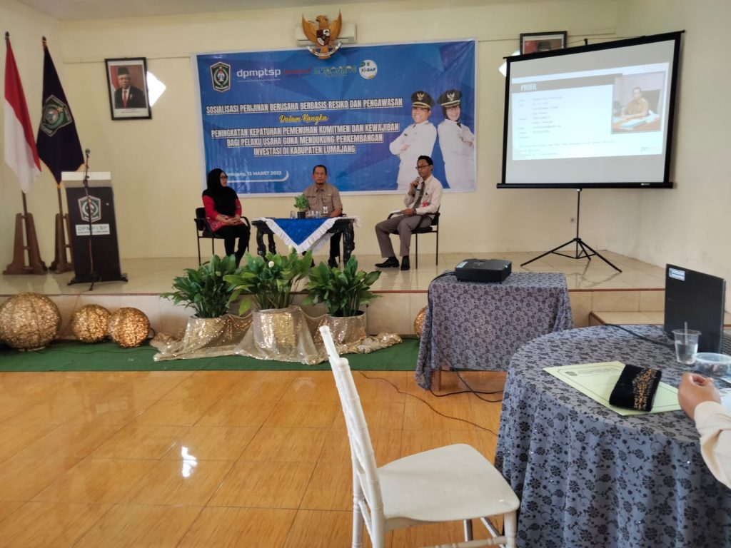 Sosialisasi ini dilakukan dalam rangka menindaklanjuti UUD No 11 Tahun 2020 tentang cipta kerja dan peraturan badan koordinasi penanaman modal No 5 Tahun 2021 tentang pedoman dan tata cara pengawasan perizinan berusaha berbasis risiko. Asisten Perekonomian dan Pembangunan. Hari Susiati SH mengatakan kegiatan ini merupakan sarana komunikasi dan berbagi gagasan atau ide dari setiap pihak yang terlibat dalam penyelenggaraan PTSP di Kota Lumajang.