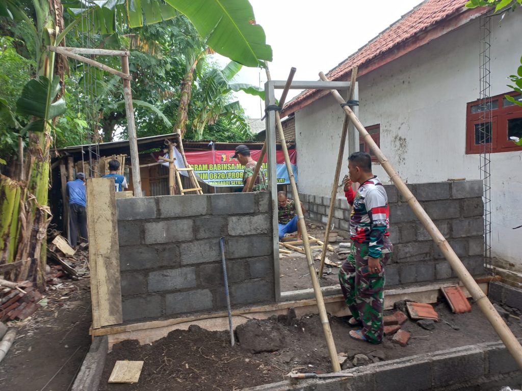 Demi meringankan beban warga yang kurang mampu, Babinsa Koramil 0820/19 Gending bersama warga melaksanakan perbaikan Rumah Tidak Layak Huni (RTLH) dalam rangka program Babinsa masuk dapur oleh Kepala Staf Angkatan Darat (Kasad) di wilayah Kodim 0820 Probolinggo, sasaran RTLH ini adalah rumah milik Bapak Abu Hasan yang beralamat di Dusun Jogo Kali RT 011 RW 04, Desa Pikatan Kecamatan Gending Probolinggo, Kamis (17-11-2022)