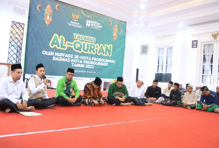 Tadarus Al Qur’an yang dilakukan setiap hari dimulai sejak awal Ramadan di rumah Dinas Wali Kota Probolinggo, berakhir hari ini (13/4). Tadarus diawali dengan khataman dan pemberian takriman yang dikoordinatori Badan Amil Zakat (Baznas), diikuti total sebanyak 98 huffadz (penghafal Al Qur’an 30 juz) se-Kota Probolinggo selama 21 hari.