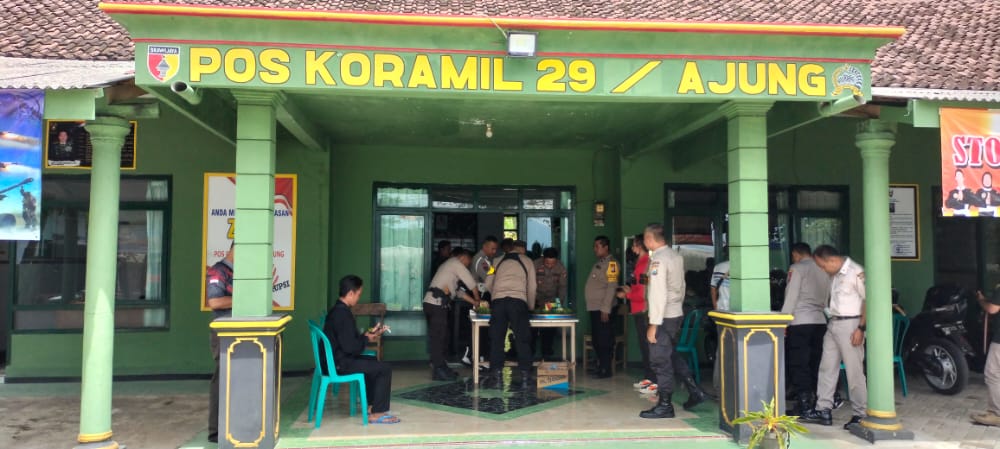 Tasyakuran dan Ucapan Selamat Hari ulang tahun TNI ke 77 dari Polsek Ajung di PosRamil 29 Ajung