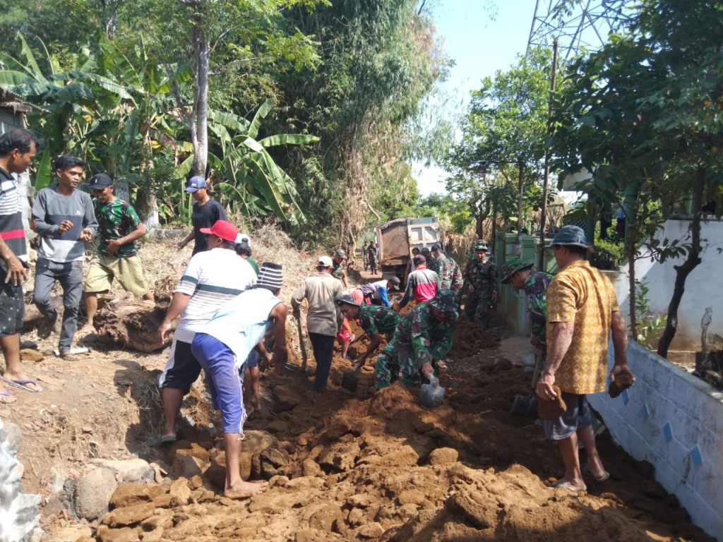 Tim Satgas TMMD Desa Klampok Probolinggo Bersama Masyarakat Membangun Paving Jalan