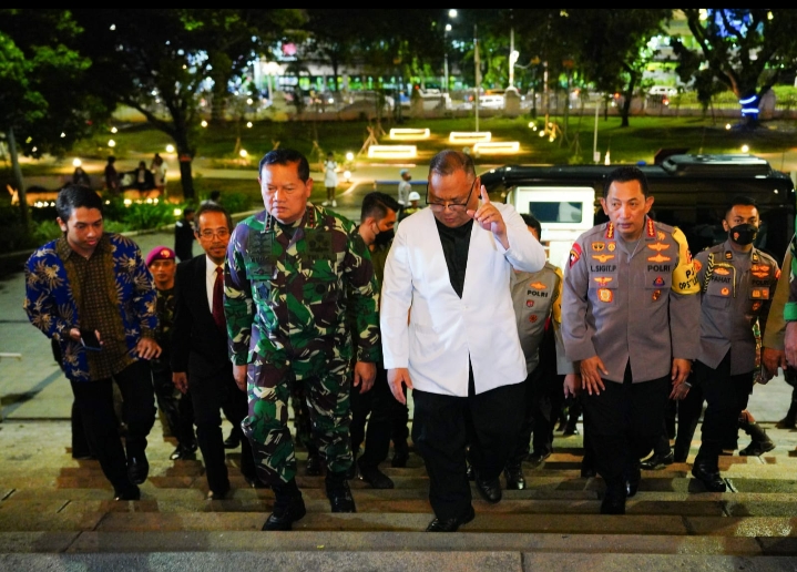 Kapolri Jenderal Listyo Sigit Prabowo dan Panglima TNI Laksamana Yudo Margono meninjau Gereja GPIB Immanuel dan Katedral, Jakarta di malam Natal. Hal itu dilakukan demi memastikan pengamanan dan penjagaan demi menciptakan rasa aman dan nyaman kepada masyarakat.