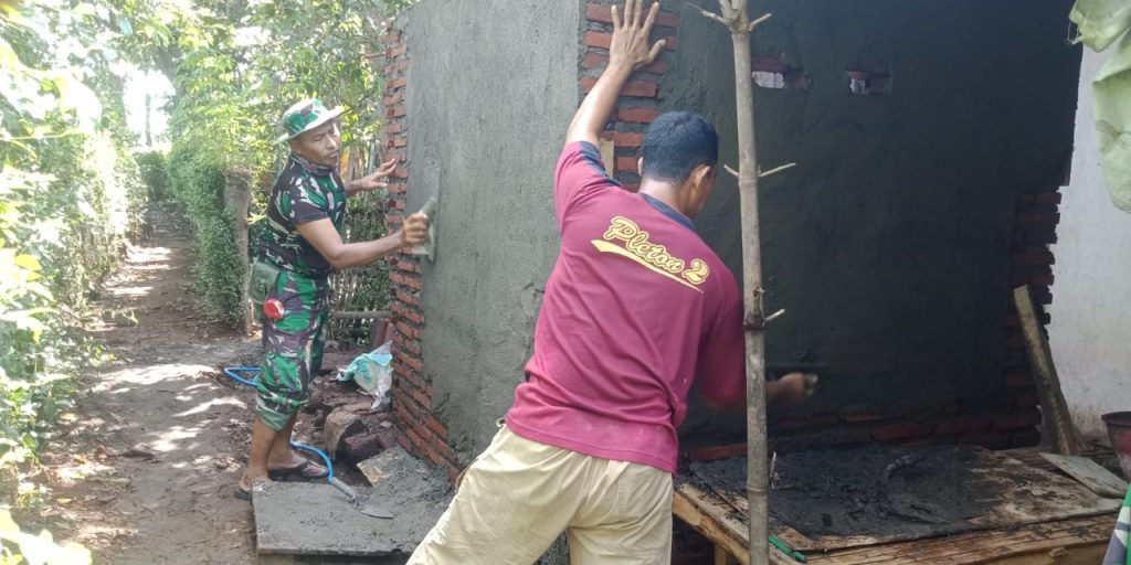 Seperti yang terlihat saat pengerjaan MCK di rumah seorang Lansia, TNI-AD bersama Masyarakat saling bahu – membahu dan bergotong royong untuk mengerjakan MCK Milik Ibu Buraten (64) Buruh tani yang tinggal di Dusun Krajan Lor RT 01 RW 03 Desa Klampok Kecamatan Tongas Kabupaten Probolinggo, Selasa (16/08/2022) pagi.