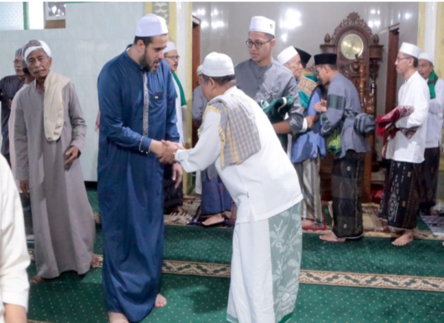 Usai menyimak tausiyah, Wali Kota Habib Hadi Zainal Abidin didampingi Sekda Ninik Ira Wibawati menyerahkan seekor sapi kepada Ketua Takmir Masjid Ar Raudlah.