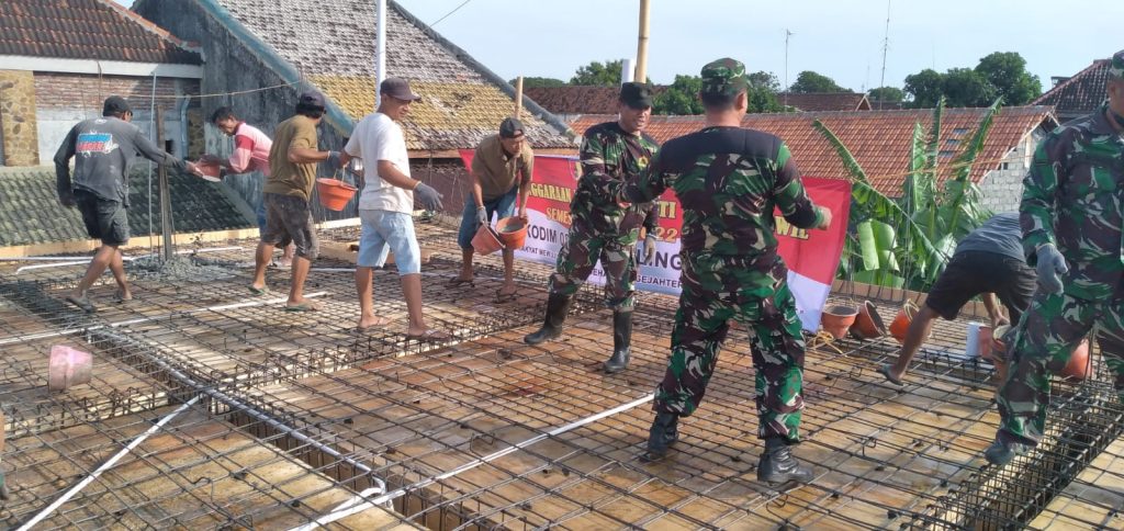 Puluhan anggota TNI yang berasal dari Kodim 0820 Probolinggo membaur dengan masyarakat untuk mengimplementasikan kegiatan Karya Bhakti Satkowil Semester II Tahun 2022. melakukan kerja bhakti pengecoran Mushola dan ruang kelas Yayasan Pendidikan Islam ( Yaspi ) Baitussholihin Al –Hamidi bertempat di Jl. KH. Hasan Genggong Gang Melati No. 136 A Kelurahan Sukoharjo Kecamatan Kanigaran Kota Probolinggo, Selasa(27/9/2022).